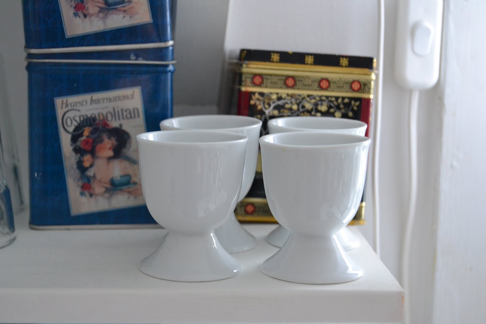 Lite nytt i köket har det också blivit. Gjorde några fynd på Dollarstore i veckan i form av söta servetter,tanken är att dom ska läggas fram till den stundande födelsedagen om några veckor. Jag hittade även fina vita äggkoppar i porslin,2 st för 10 kronor är ju ett riktigt fynd tycker jag.Måste nog köpa ett par till tror jag. En praktiskt glasburk till mina tepåsar fick också följa med hem.